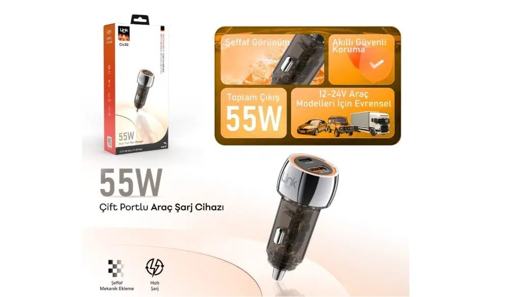Etiketler | C436 Link Tech Araç Şarj Aleti PD 30W QC 25W Type-C USB Şeffaf |