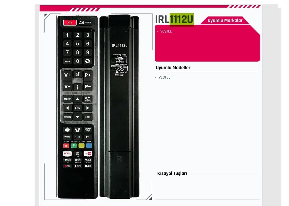 IRL1112U Vestel Tv Kumandası SEG HI-Level Nexon