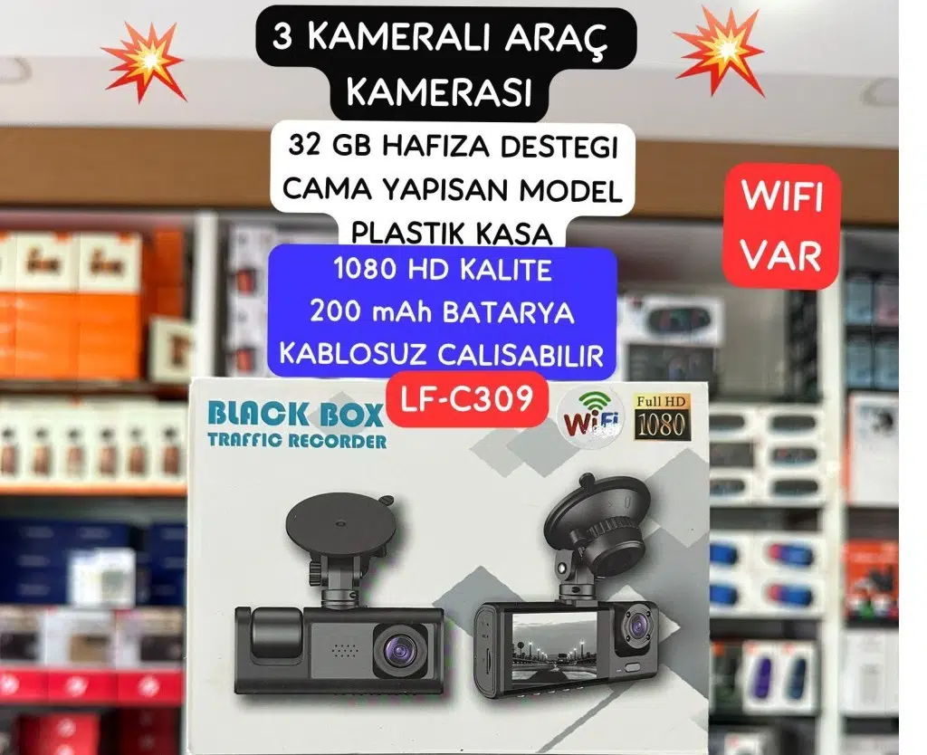 EtiketlerLF-C309 Araç İçi Kamera Hafıza Kart 3 Kameralı Wi-Fi