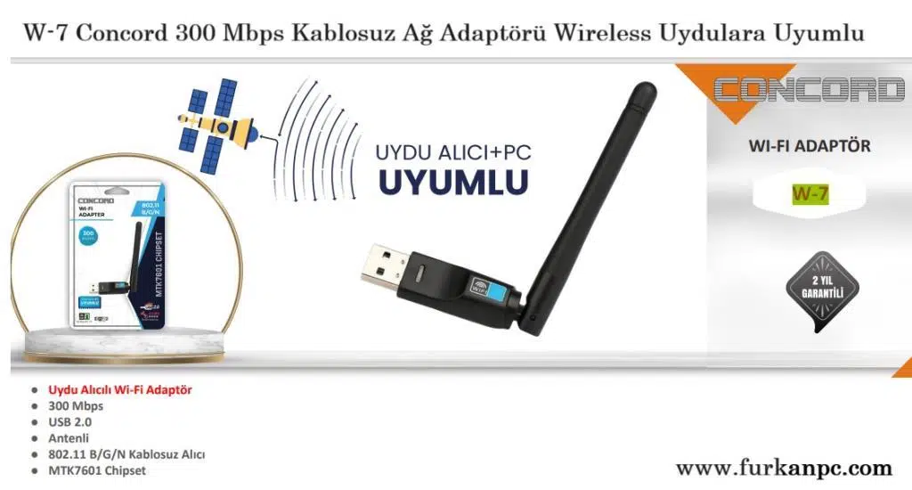 | Etiketler | W-7 Concord 300 Mbps Kablosuz Ağ Adaptörü Wireless Uydulara Uyumlu |